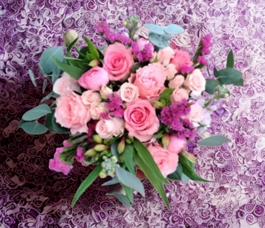 The Love Letter Bouquet feels like a handwritten note — personal, heartfelt, and beautifully layered. This lush arrangement features a romantic mix of pink and light pink roses, garden roses, ranunculus, spray roses, stock, statice, alstroemeria, and eucalyptus, thoughtfully composed into a full 22-stem bouquet.